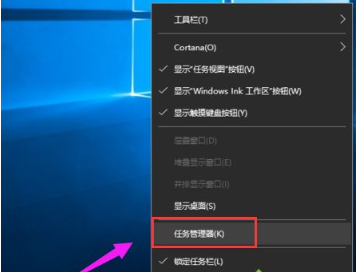 3.在任务栏底部空白处,用鼠标右键单击,打开一个菜单栏,单击就可以打开任务管理器。
