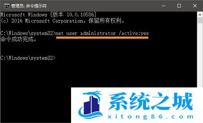 5、在命令提示符中输入:net user administrator /active:yes 按下回车键即可。