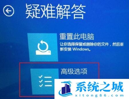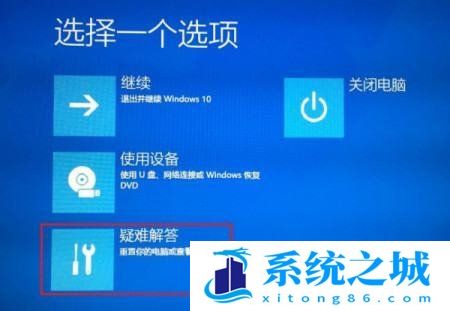 4、重新开机进入 Windows RE(恢复环境)界面,点选[疑难解答]。