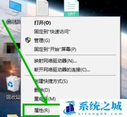 10、桌面右击【此电脑】图标,在右键菜单选择【属性】选项。