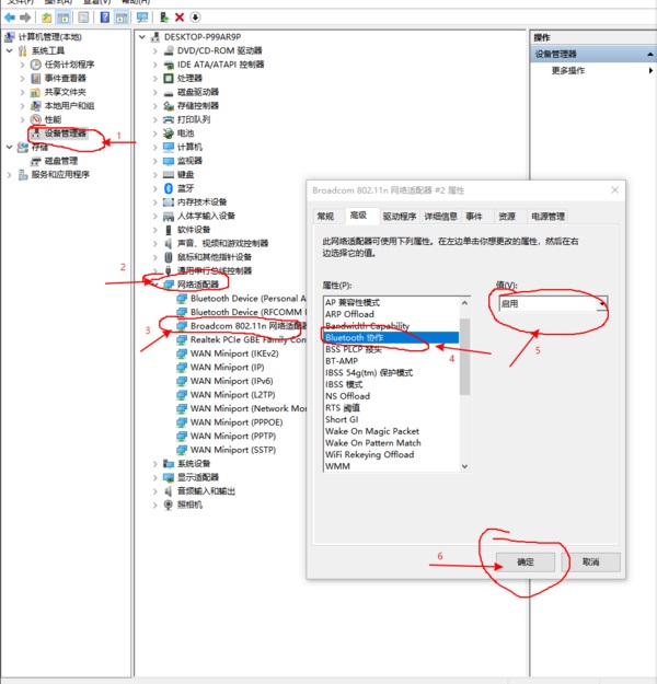 4、在【高级】里面找到【Bluetooth】,然后将其选择为【启用】。