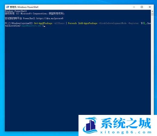 5、在powershell的命令界面窗口中,输入并运行下面的命令: