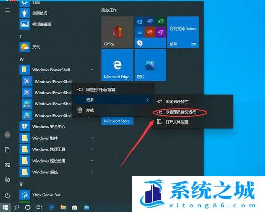 从Windows开始的菜单中找到“Windows powershell”,并以管理员的身份开启运行。