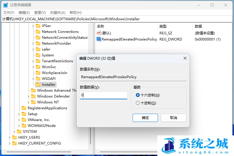 6、然后双击打开【RemappedElevatedProxiesPolicy】,将数值数据修改为【1】;