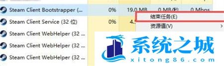 2、然后找到所有steam进程,将他们全部“结束任务”。
