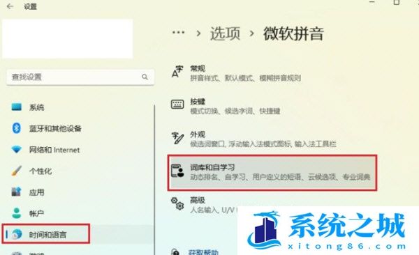 4、点击词库和自学习。