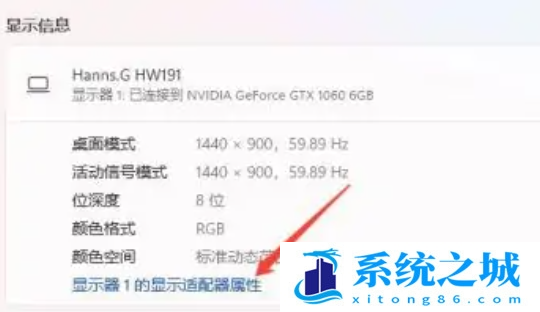 第4步,进入高级显示设置,点击显示器的显示适配器属性。
