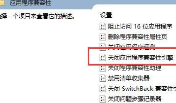 3、接着找到“应用程序兼容性”,再双击打开其中的“关闭应用程序兼容性引擎”。
