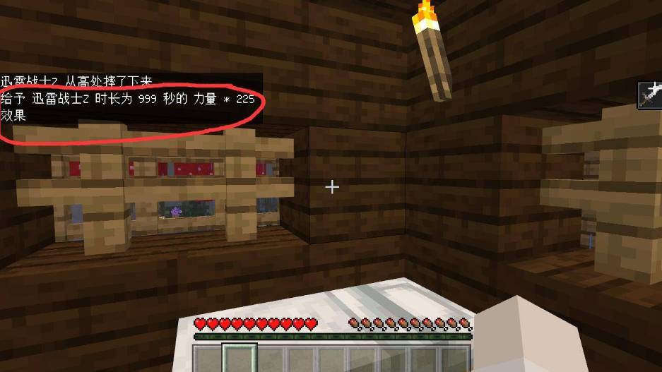 1.首先我们进入游戏聊天框,输入/effect @s strength 999 225 true这条指令。