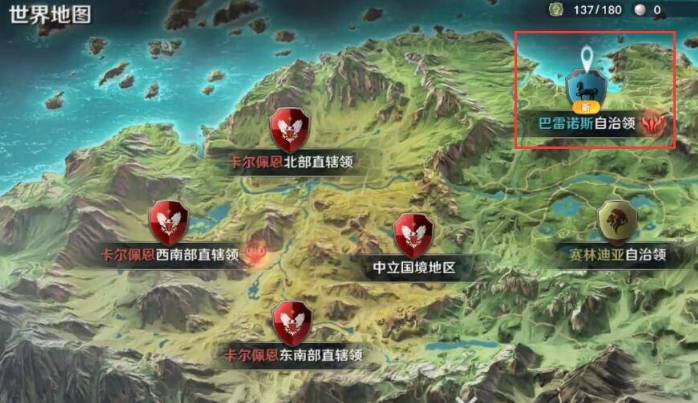 一、【夏日炮台】的入口在泰勒米安海边,打开【黑色沙漠】地图,点击进入巴雷诺斯自治领,如下图所示。