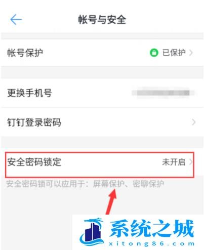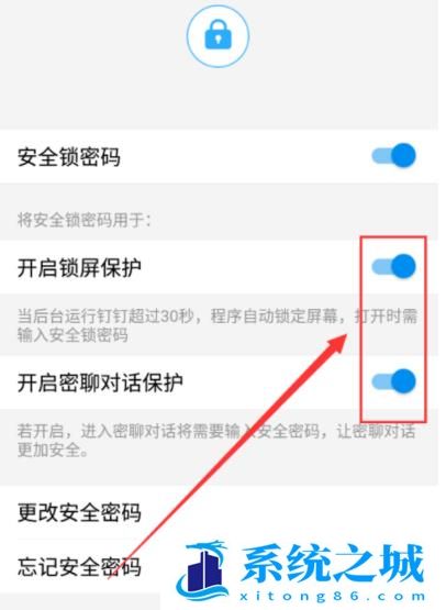 05 接着在安全密码锁定页面中点击开启安全锁密码,