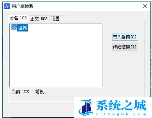6、在命令窗口输入UCS,将坐标系恢复到世界坐标系。