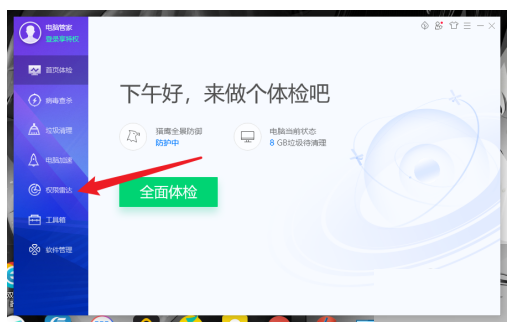 1、打开桌面上的【腾讯电脑管家】软件,点击左侧菜单栏中的【权限雷达】选项。