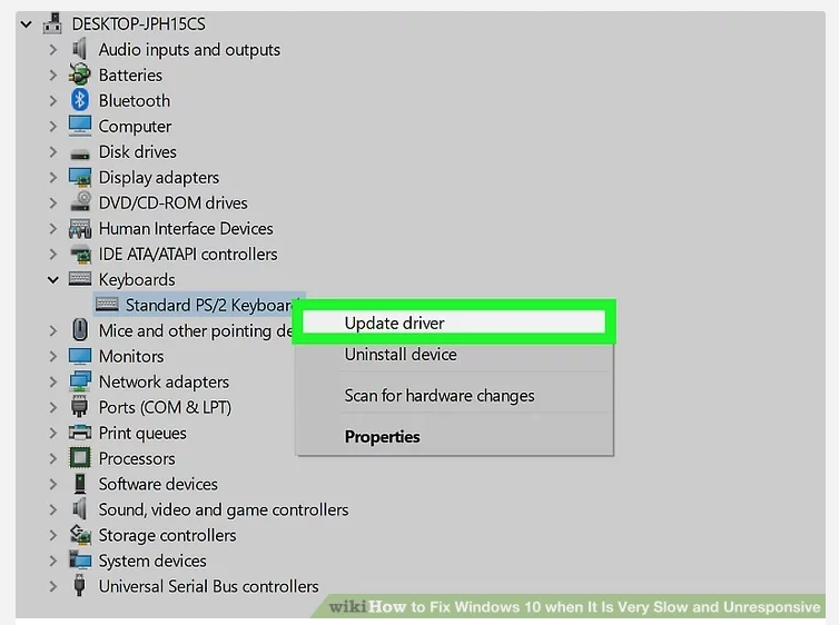 2、滚动到并选择缓慢且无响应的类别。根据您计算机上的哪些功能缓慢或无响应,单击您要更新的硬件类别旁边的箭头。例如,如果您在输入时注意到延迟,您可以选择“键盘”。