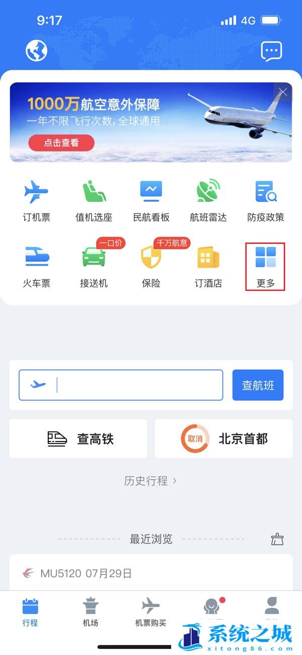 1、开启飞常准的主界面,找到下面的更多图标