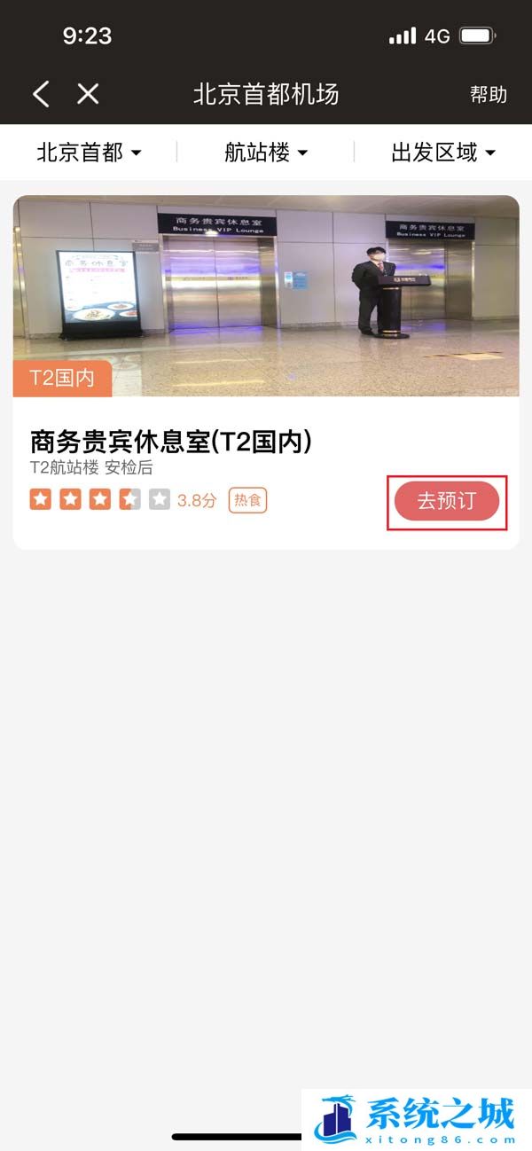 3、找到下方贵宾休息室左侧的【去预定】。