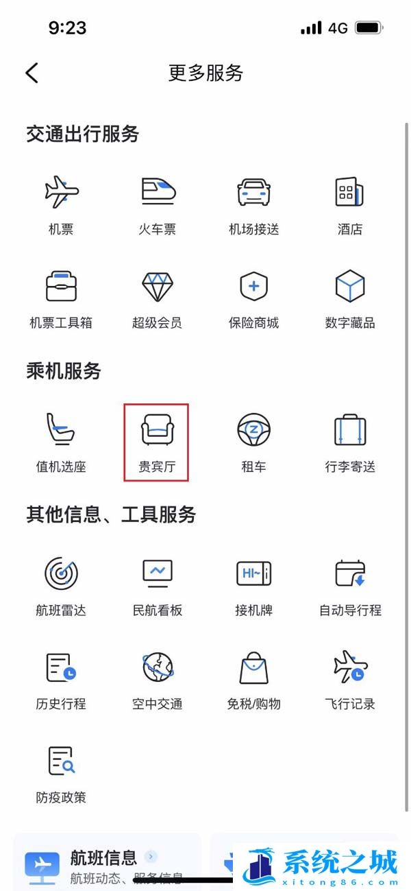 2、进入服务界面后,找到贵宾厅图标