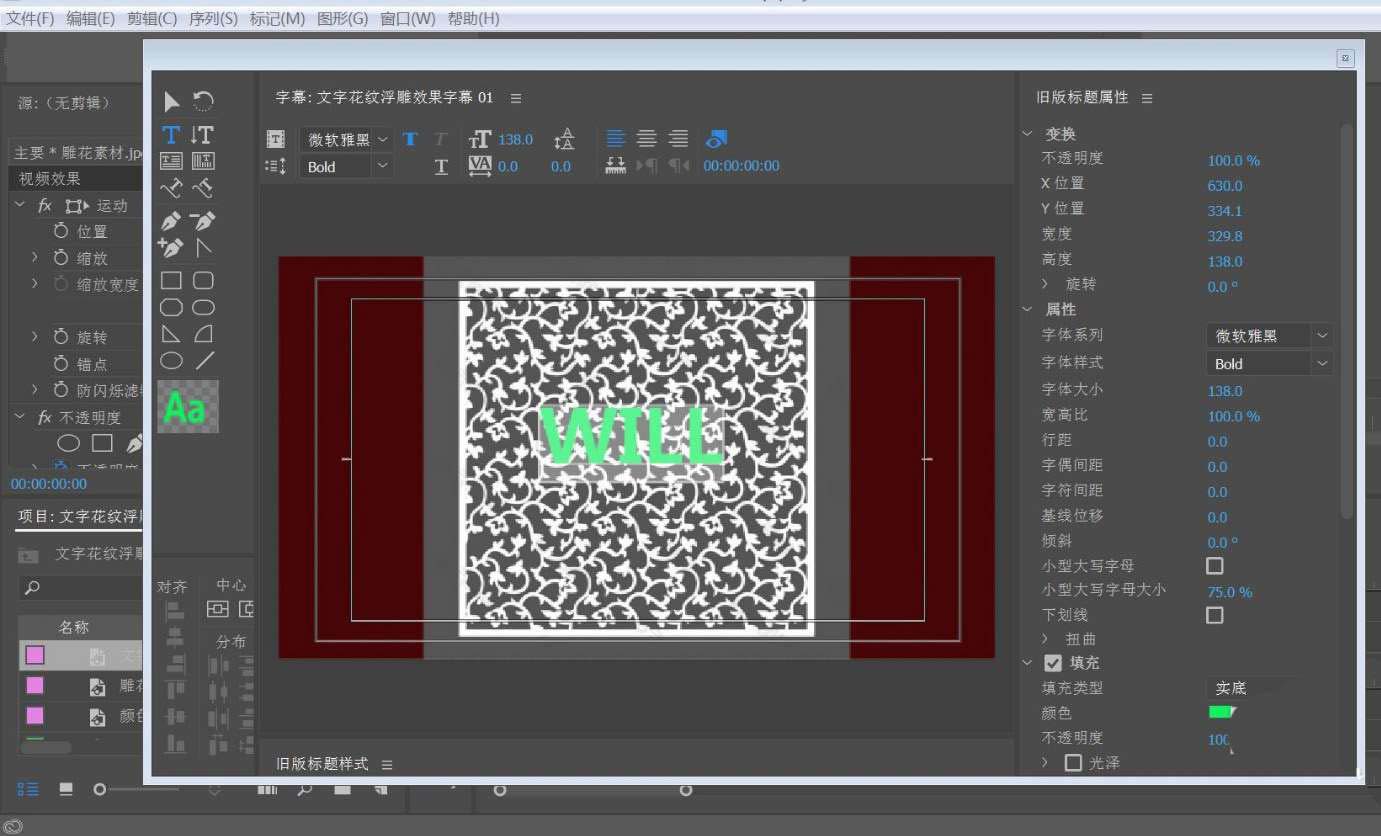 1.打开界面后,新建空白项目序列,并在颜色遮罩背景中导入雕花素材
