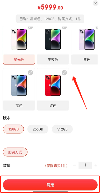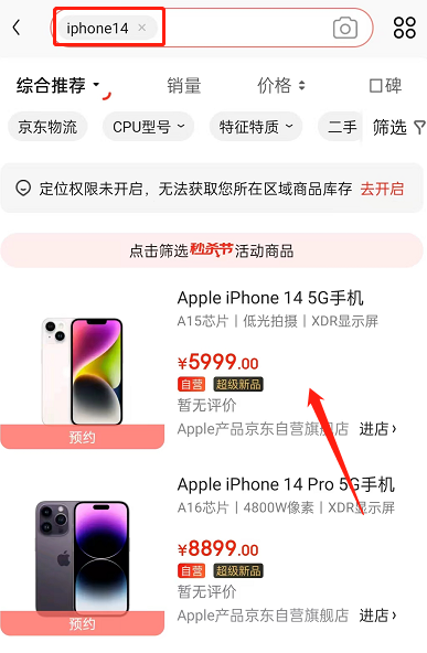 1、打开京东,搜索iPhone14,点击进入需要购买的款式。