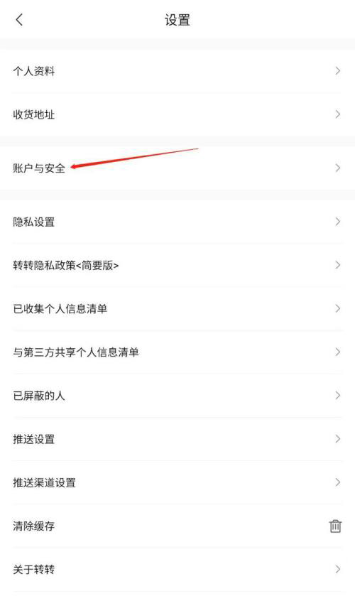 1、开启转转APP,在设置页面选择“账户与安全”选项,