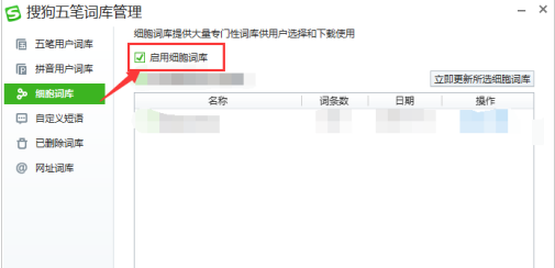 搜狗五笔输入法软件中拥有的词库资源是相当丰富的,但是一些不常用的词库系统在默认状态下都是关闭的。那么用户如果想要打开细胞词库的话,小编下面文章中就讲解了详细的操作教程,一起来看看吧!