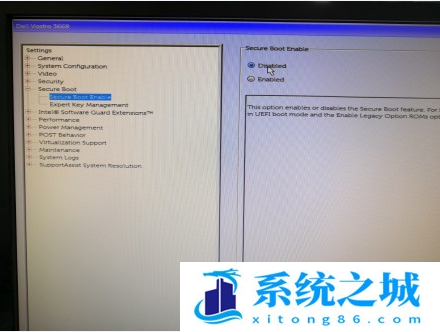 3、将Secure Boot选项下面的Secure Boot Enable中的Enabled改为Disabled,界面如下: