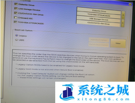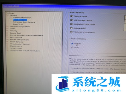 5、将General选项下面的Boot Sequence 中的Boot List Option 中的UEFI改为Legacy,界面如下: