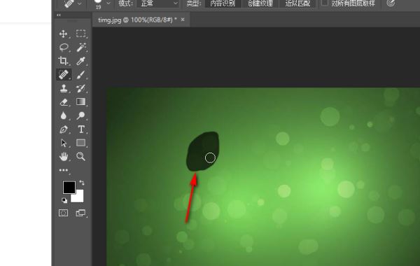 3.最后在涂抹覆盖以后松开左键,即可看到光晕污点已经自动消除