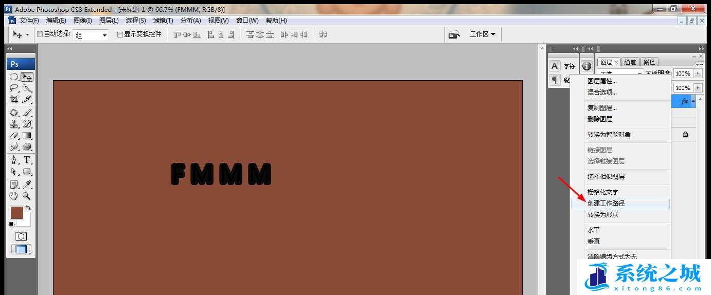 5.随后鼠标右键图层,点击创建工作路径按钮