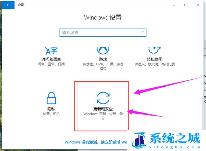 1、首先按下快捷键WIN+I打开设置,点击【更新和安全】进入。