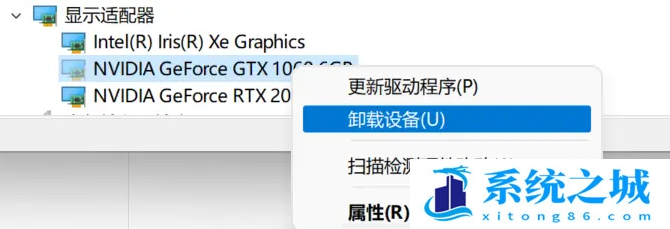 3、右键【卸载设备】,并勾选【尝试删除此设备的驱动程序】;