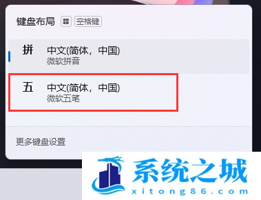最后,按键盘上的【 Windows徽标键 + 空格键 】,可以调整键盘布局,切换到微软五笔输入法。