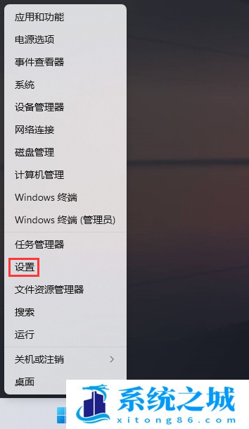 1、首先,按键盘上的【Win + X】组合键,或右键点击任务栏上的【开始图标】,在打开的隐藏菜单项中,选择【设置】;