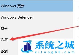 4、进入“更新与安全”设置窗口后,再点击左侧的恢复。