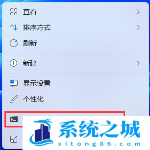 1、桌面右键点击空白处,在打开的菜单项中,选择在 Windows 终端 中打开;