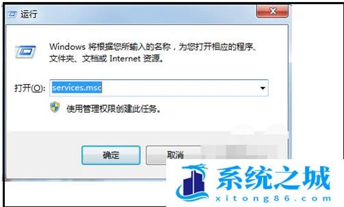 1、首先打开自己的电脑,找到【运行】选项,点击打开,在运行对话框输入services.msc 命令,点击确定。