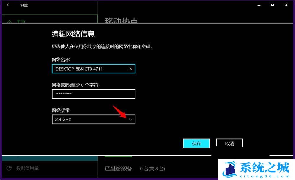 4、往下,可以看到当前的网络频带为2.4 GHz,然后点击编辑;