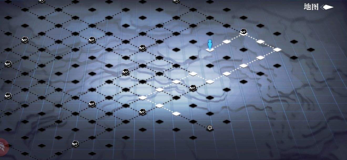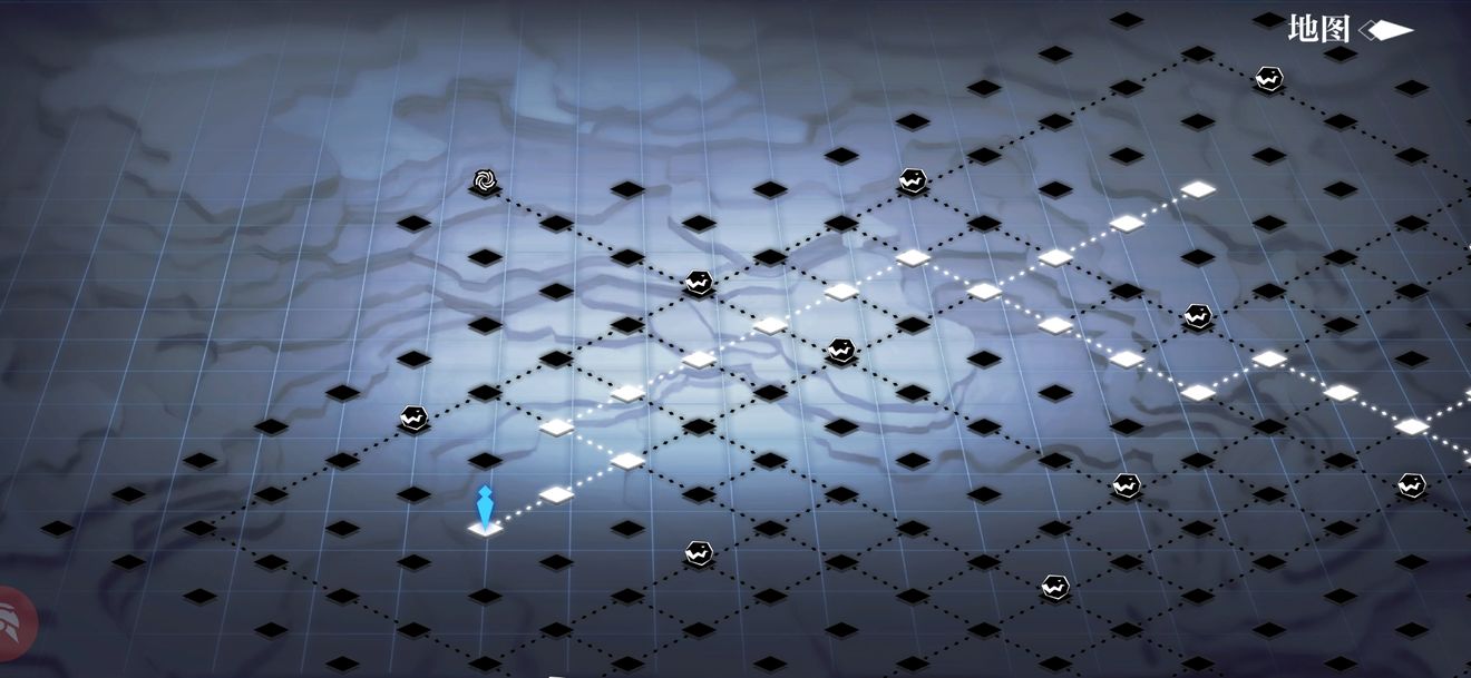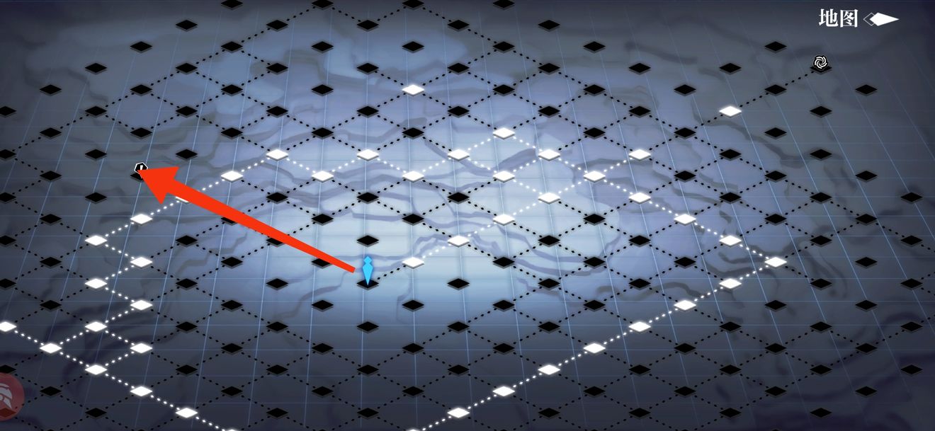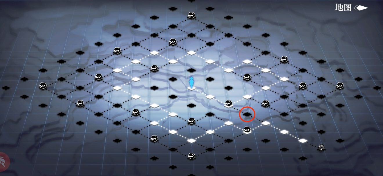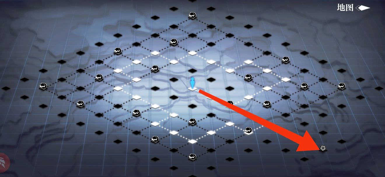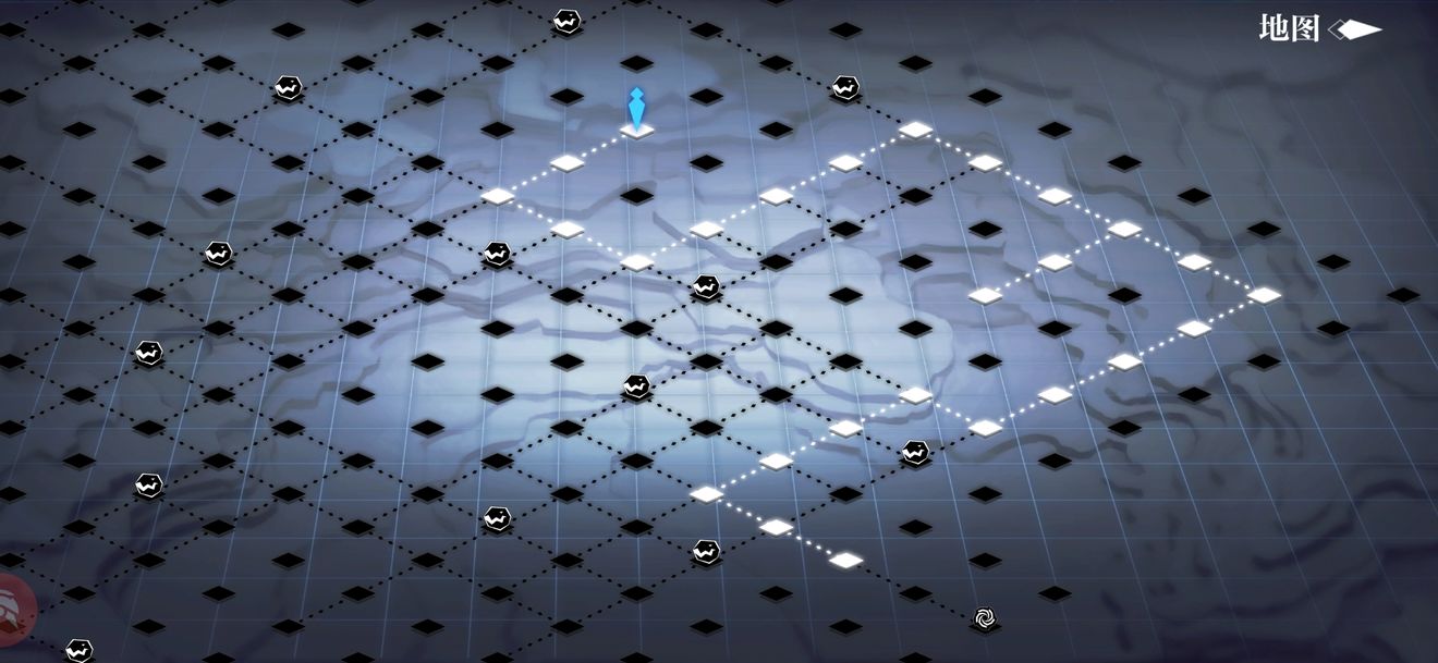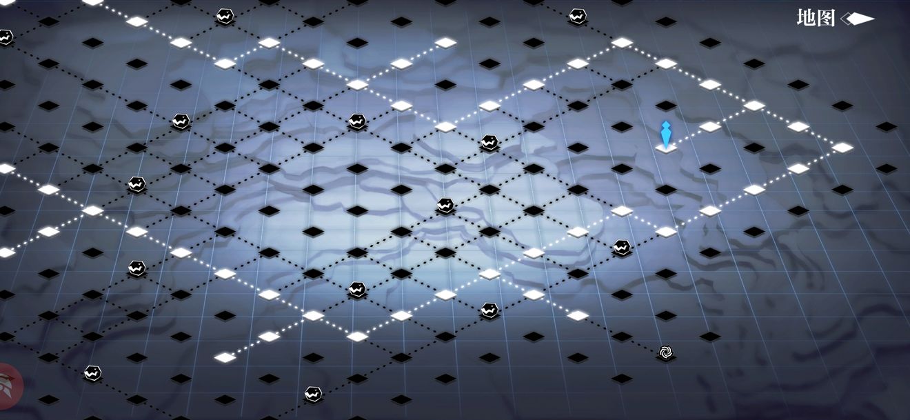 如上图,调到夜晚,先去老板那里可以买到人偶升级的东西,还有一个任务可以选,奖励是智之硬币和勇之硬币,我选了勇之硬币,任务是打掉5个boss,反正能打过无脑就完事了。至于智之硬币的话,好像要跟5个boss玩游戏,后面5张是boss的位置,按这个白色的路线走就行了。