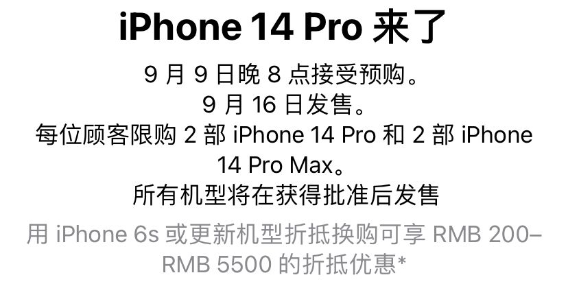 其中大家需要注意的是每位顾客只能限购两部iPhone14Pro和两部iPhone14Pro max