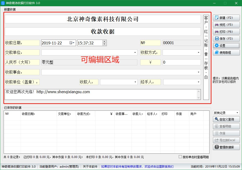 神奇简洁收据打印软件是北京神奇像素科技有限公司开发的一款专业、易用、高效的简洁收据管理打印软件。支持收款日期自动获取、单号自动生成、交款单位管理、收款方式管理、人民币自动转换为大写、收款事由管理、数据库管理等功能。极易上手的操作体验,助您快速打印收据,节省您的宝贵时间。