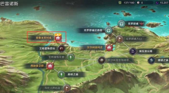 二、在巴雷诺斯小地图的左边找到新开放的泰勒米安村庄,如下图所示。